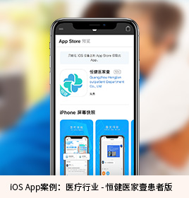 APP简介:恒健医家壹医生版App开发,是成都APP开发公司为门诊部和医联体医院医疗专家、医生、护士和患者提供诊疗、护理等健康咨询与管理服务的iOS APP开发,为患者提供健康用品和医疗服务项目